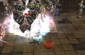 After you can go into the next room. Make sure you have at least 2 SP bars (if not 3). This next boss requires u to kill him in certain amount of time or he will fully regenerate. He will also turn on a shield occasionally. Once he turns on his shield, get off the platform to the stairs. Kill all the mobs that respawn at the stairs and then attack the boss again. Just keep doing that back and forth, and he should die. Furthermore, once his shield is turned on, the faster you kill the guards, the more time you will have to hit the boss before the shield goes back up (shield respawns every 45 seconds)