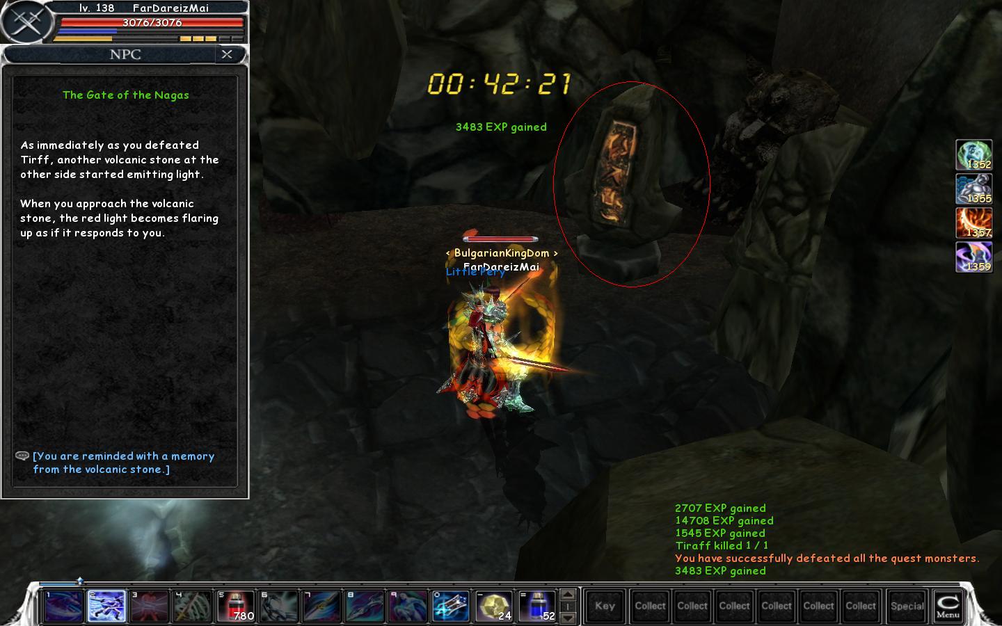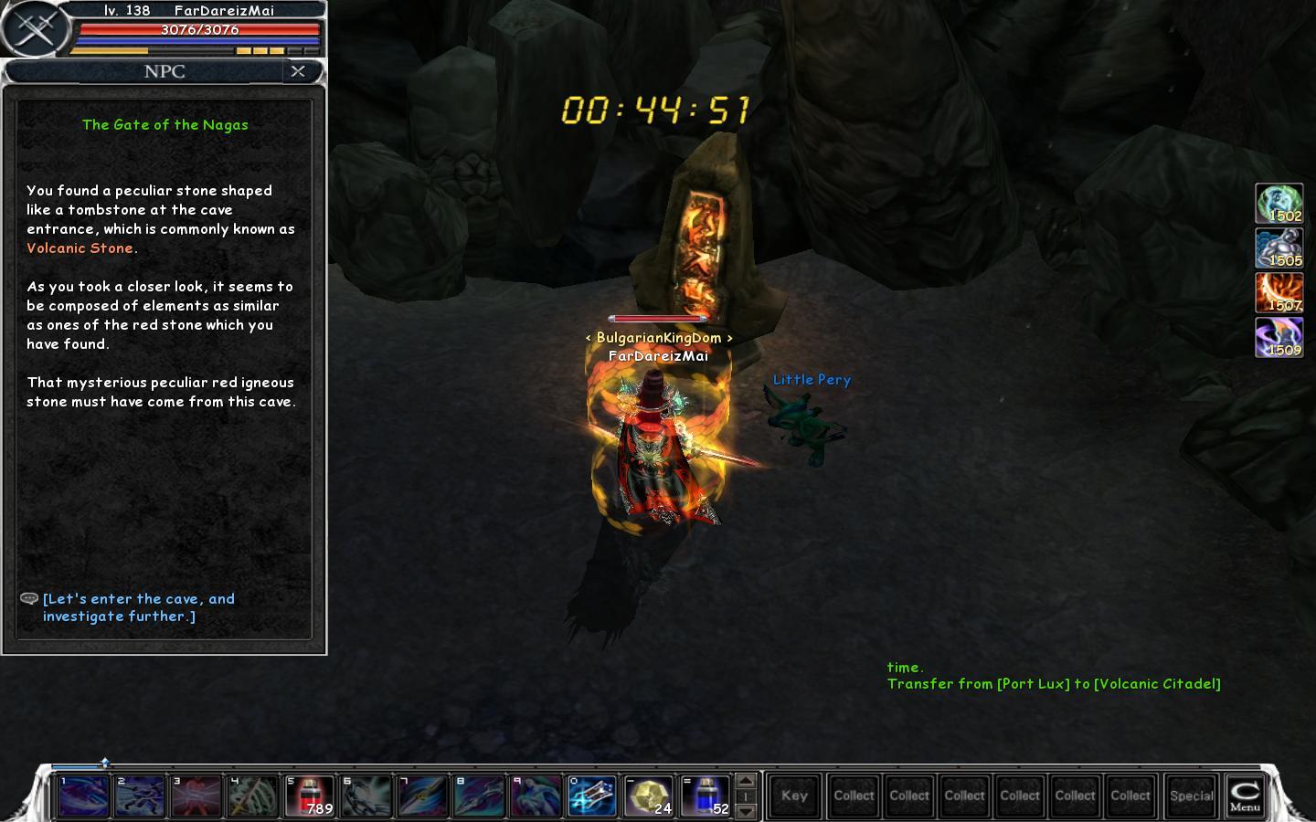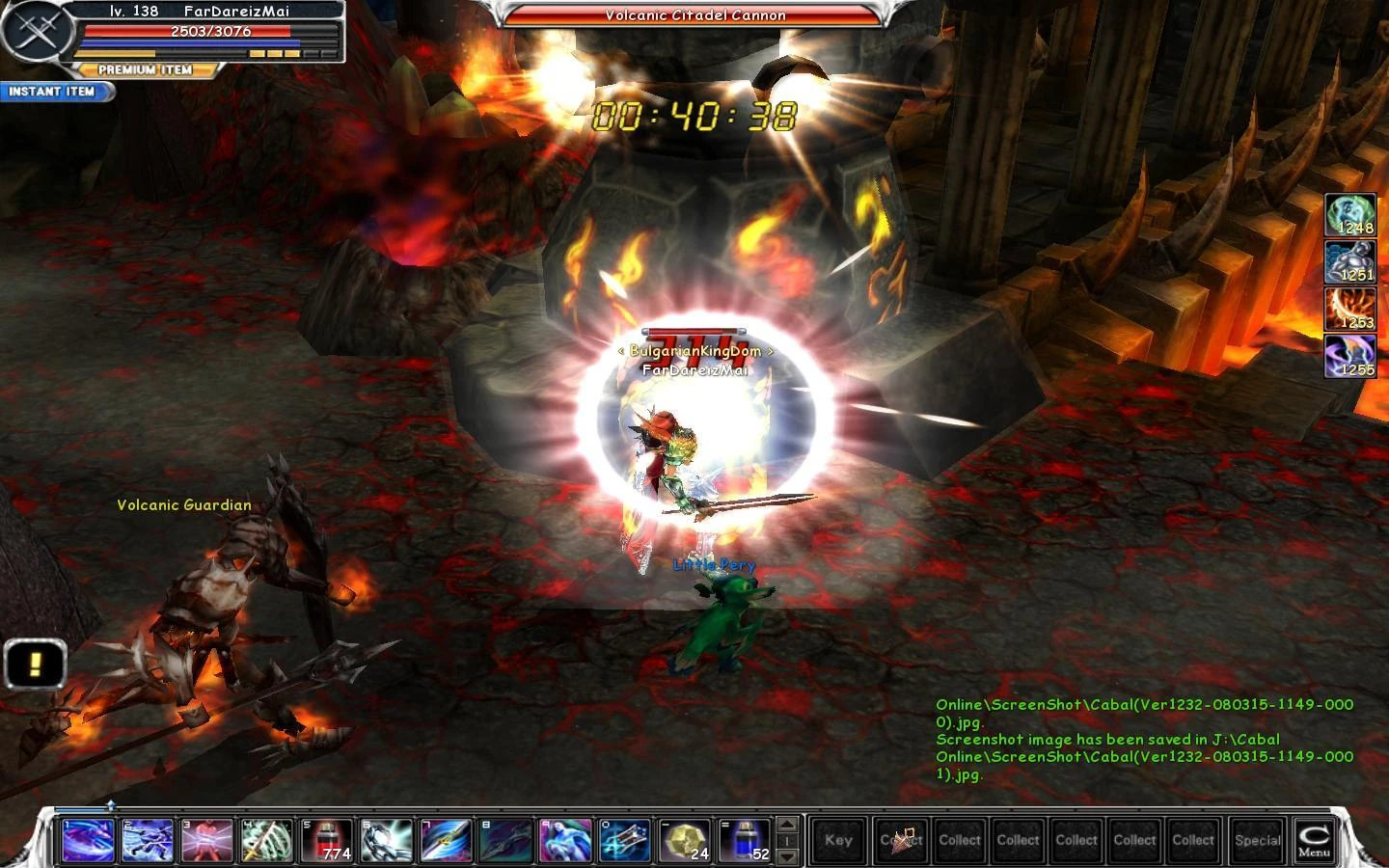 4.2. You find the 2 Volcanic Citadel Cannons and destroy them. Beware! A group of mobs(Volcanic Guardian) spawn in a short period and try to disturb you. The 1st Cannon.